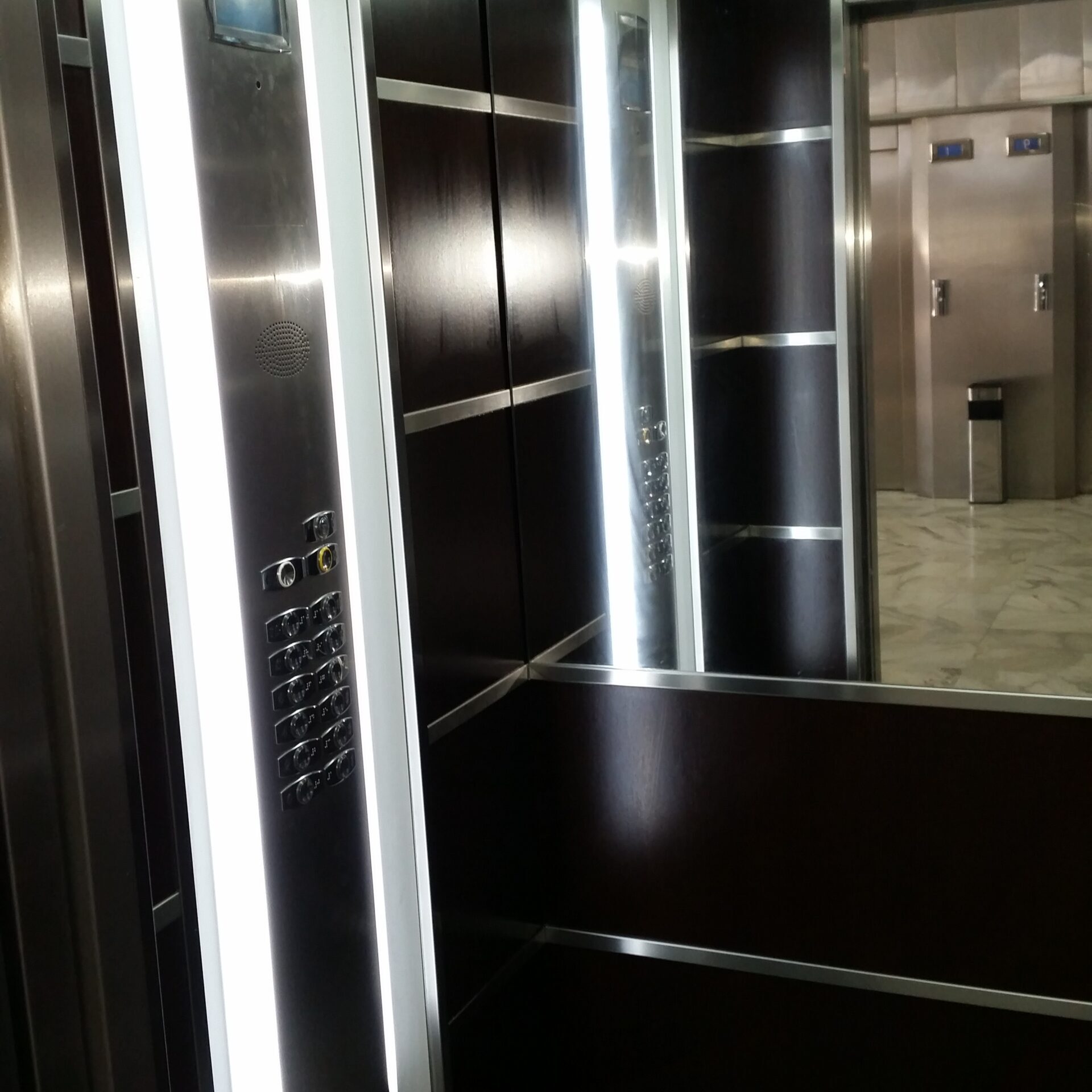 Cambio completo del interior del ascensor. Decoramos su ascensor con nuestros diferentes modelos a elegir de nuestro catálogo. Permitiendo elegir al cliente entre los mejores materiales de melanina, de formica, de acero inox y de PVC para el suelo.