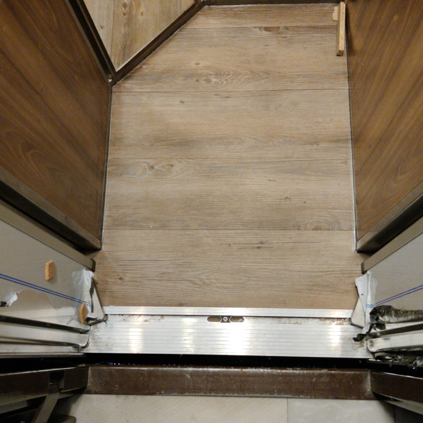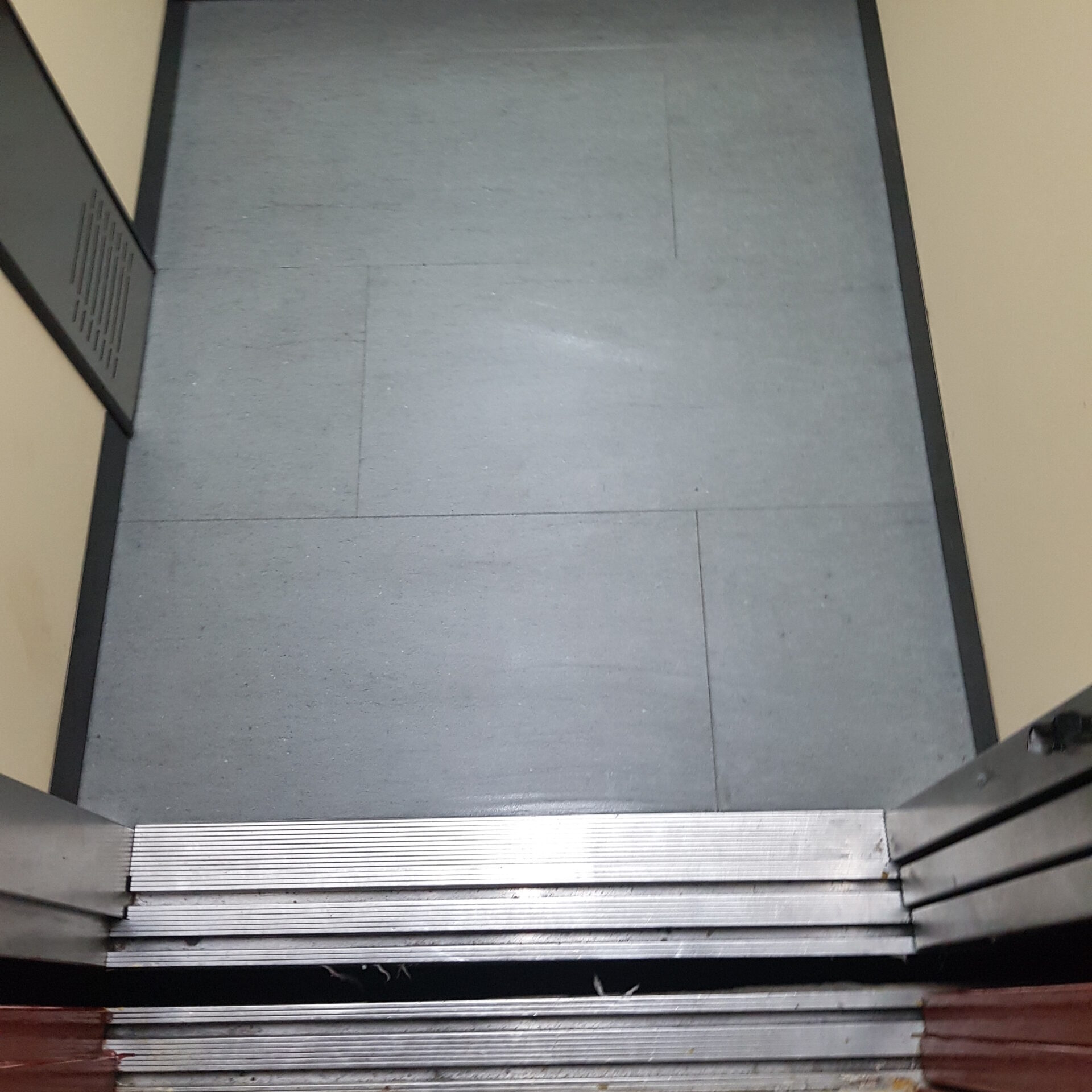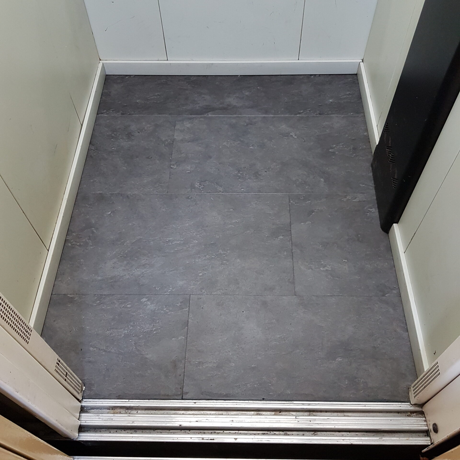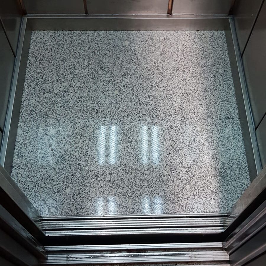 La instalación de este tipo de pavimento dentro del habitáculo del ascensor nos obliga a regular el contrapesado del ascensor mediante pletinas de hierro que nos harán nivelar el peso sin ningún tipo de problema para la maquinaria.