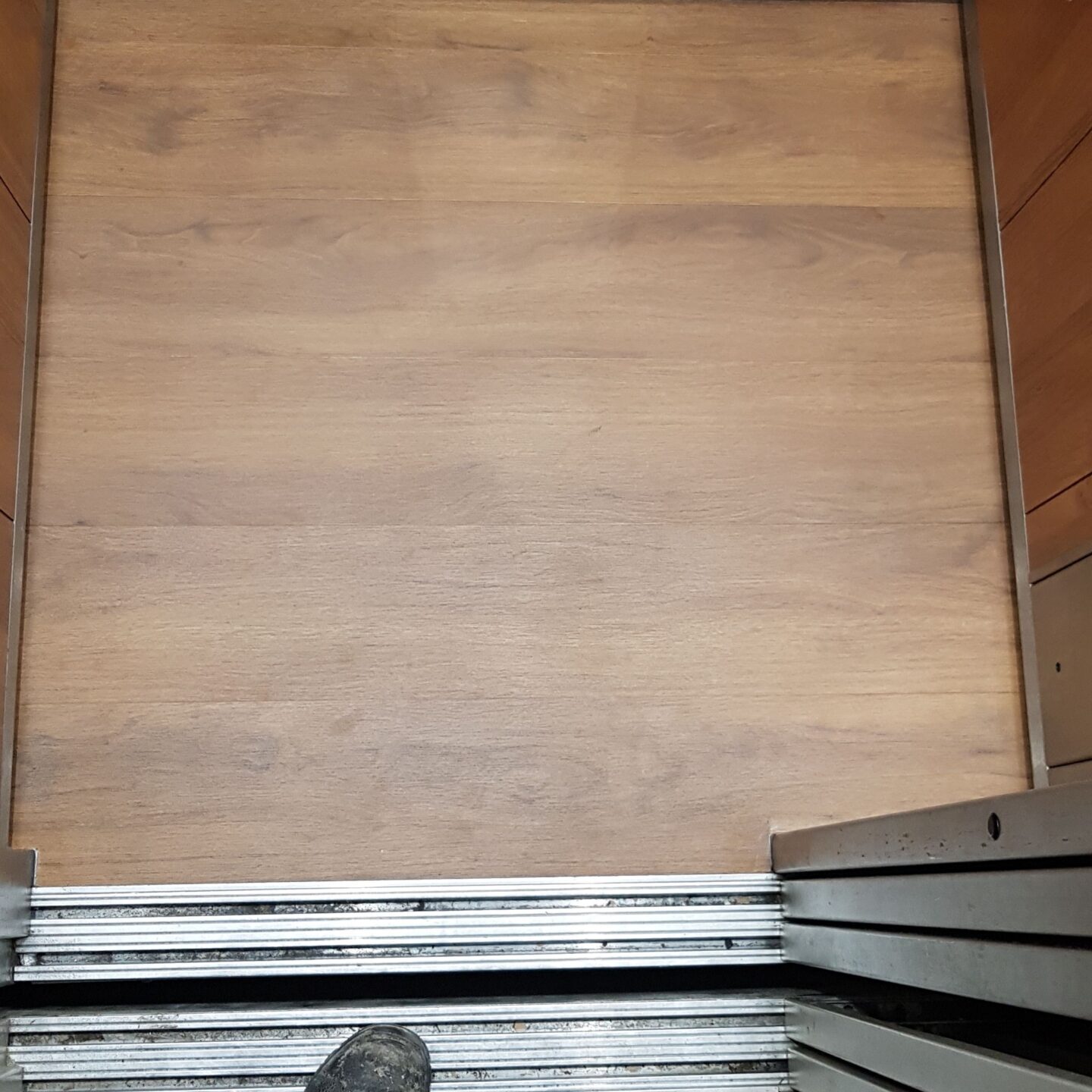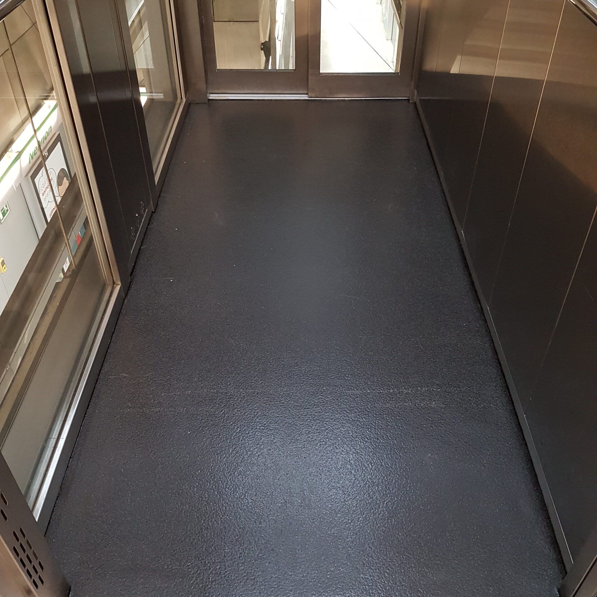 Este tipo de suelo es el más recomendado para ascensores con una carga enorme de tránsito de personas y maquinarias, así como para montacargas e incluso se puede colocar en paneles a efecto de material anti vandálico.