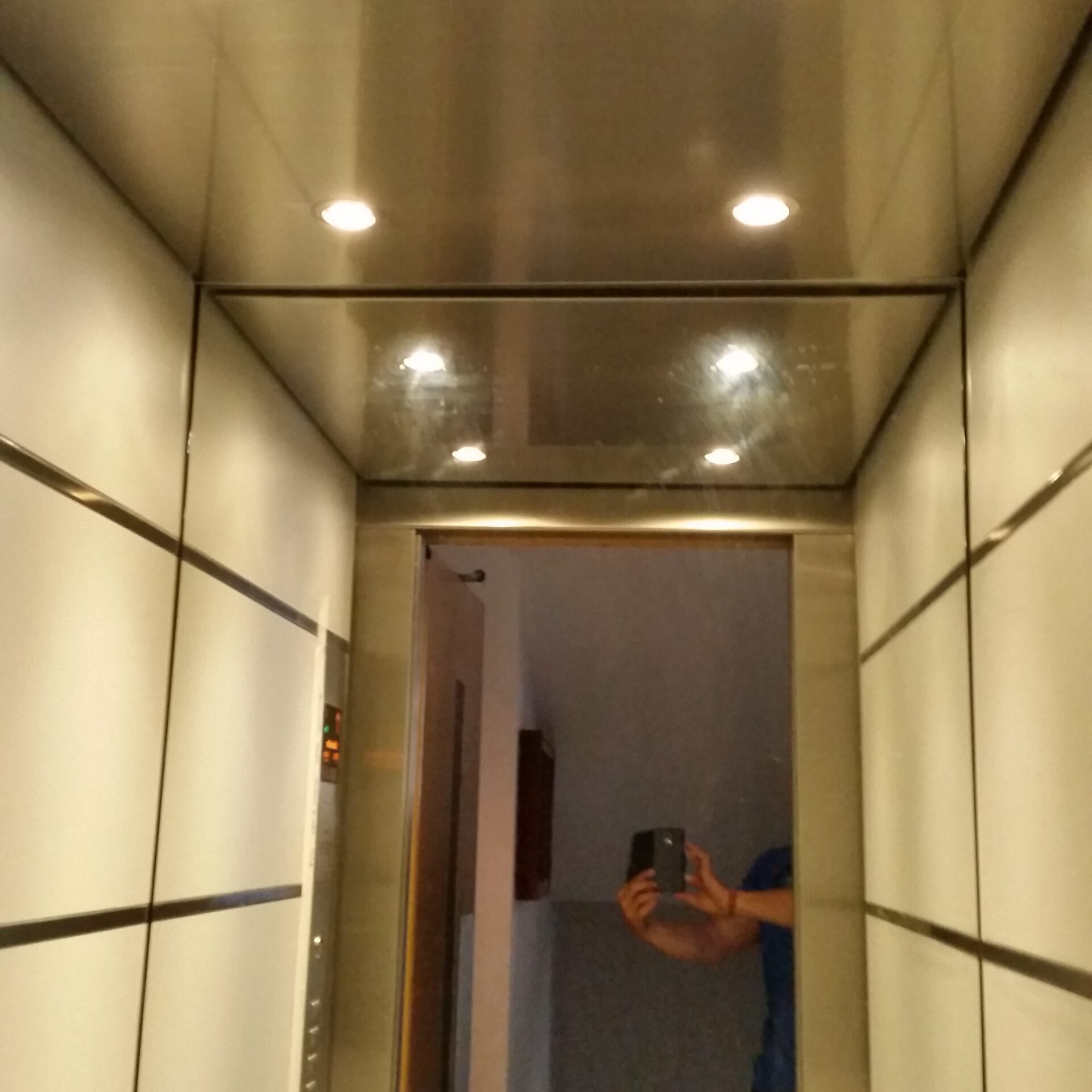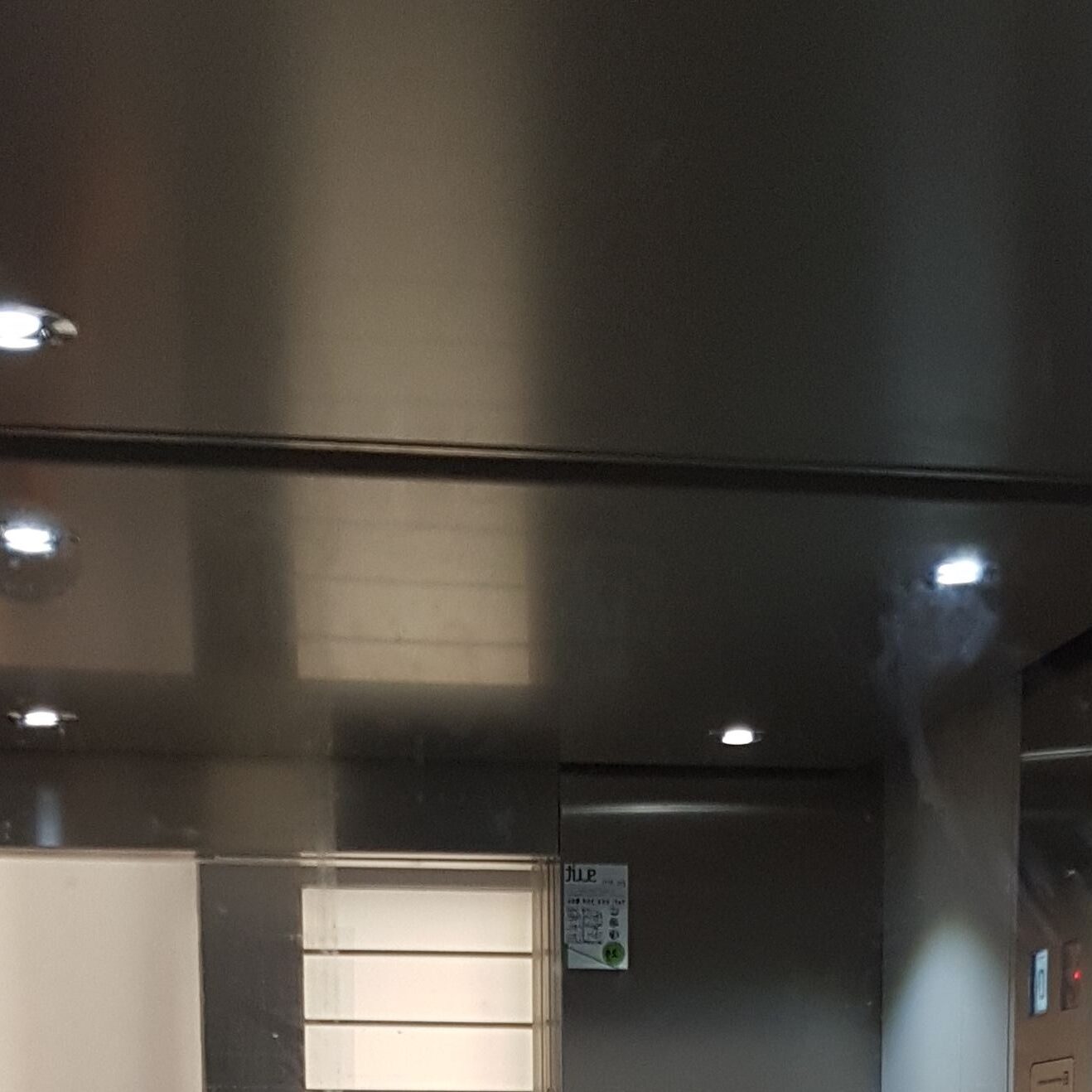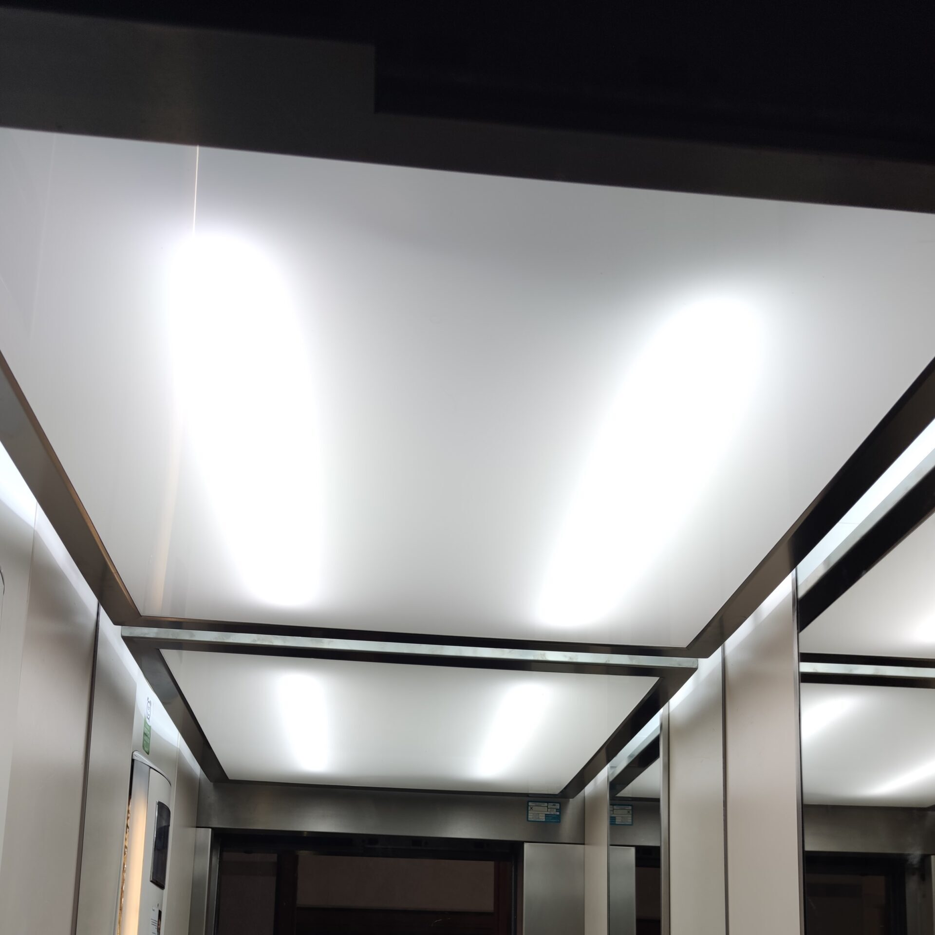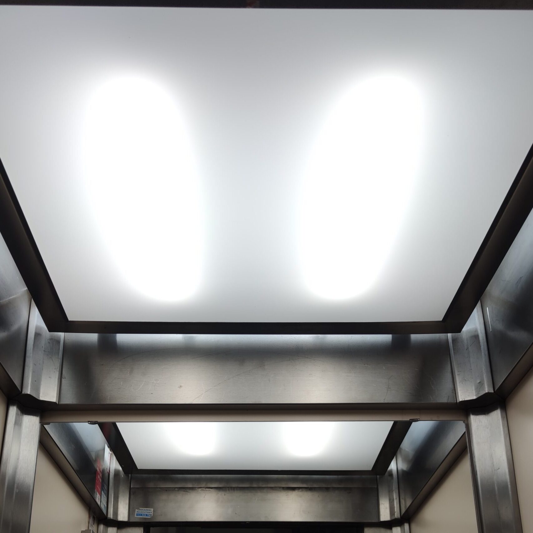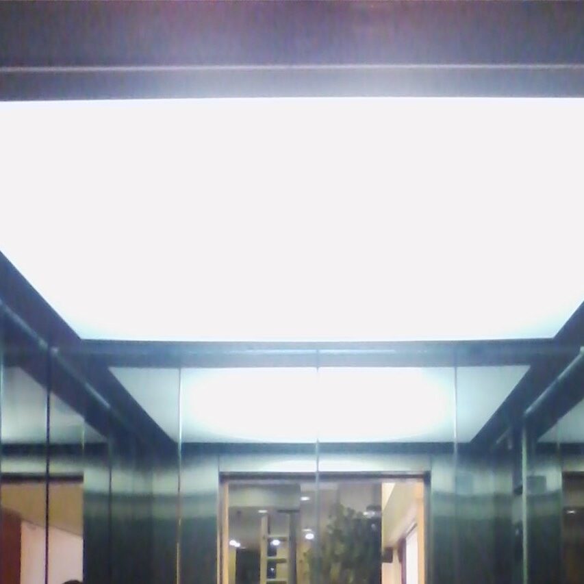 El techo de acero inox con focos LED es el más elegante para su ascensor. Este techo postizo permitirá seleccionar que tipo de iluminaria colocar (cálida, fría…).